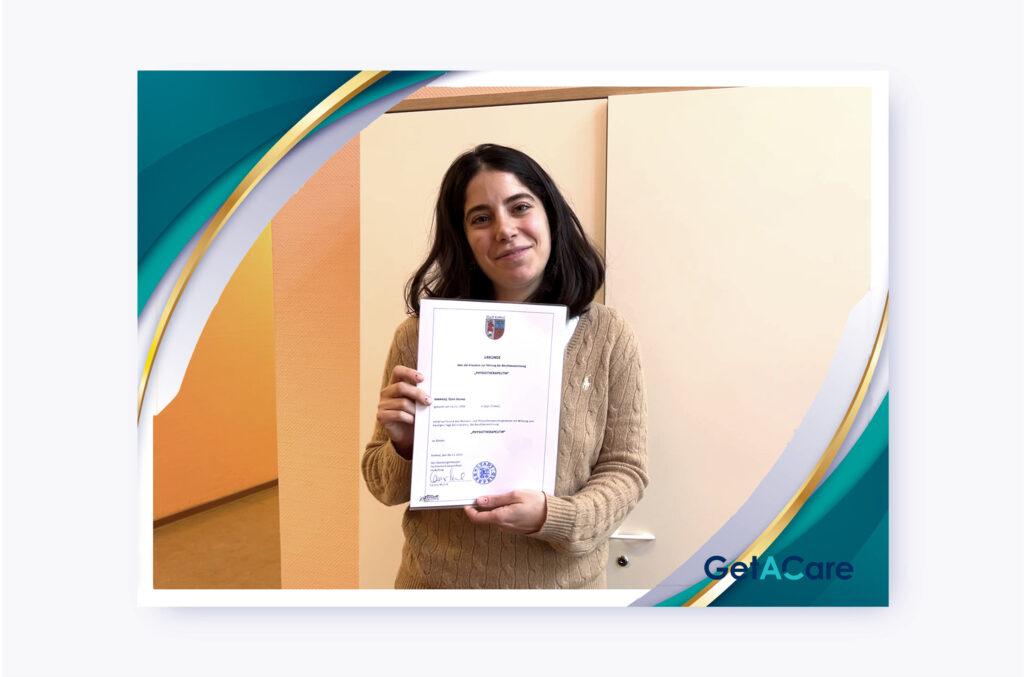 Uzun ve yoğun tam denklik süreçlerindeki sabırlı çabalarımız mutlu sonuç vermeye devam ediyor. GetACare Almanya Kariyer Programını başarı ile tamamlayan adaylarımız, Urkundelerini alarak Almanya’da mesleki yeterliliklerine kavuşuyorlar. Bir çok adayımız ile de yakın zamanda aynı sevinci paylaşmayı bekliyoruz. Getacare ekibi olarak bu güzel sonuçlardan dolayı gururluyuz. Adaylarımızı tebrik ediyor ve bundan sonraki Almanya kariyerlerinde de başarılarının katlanarak sürmesini diliyoruz. Adayların videolarına buradan ulaşabilirsiniz. Sıradaki aday siz de olabilirsiniz…